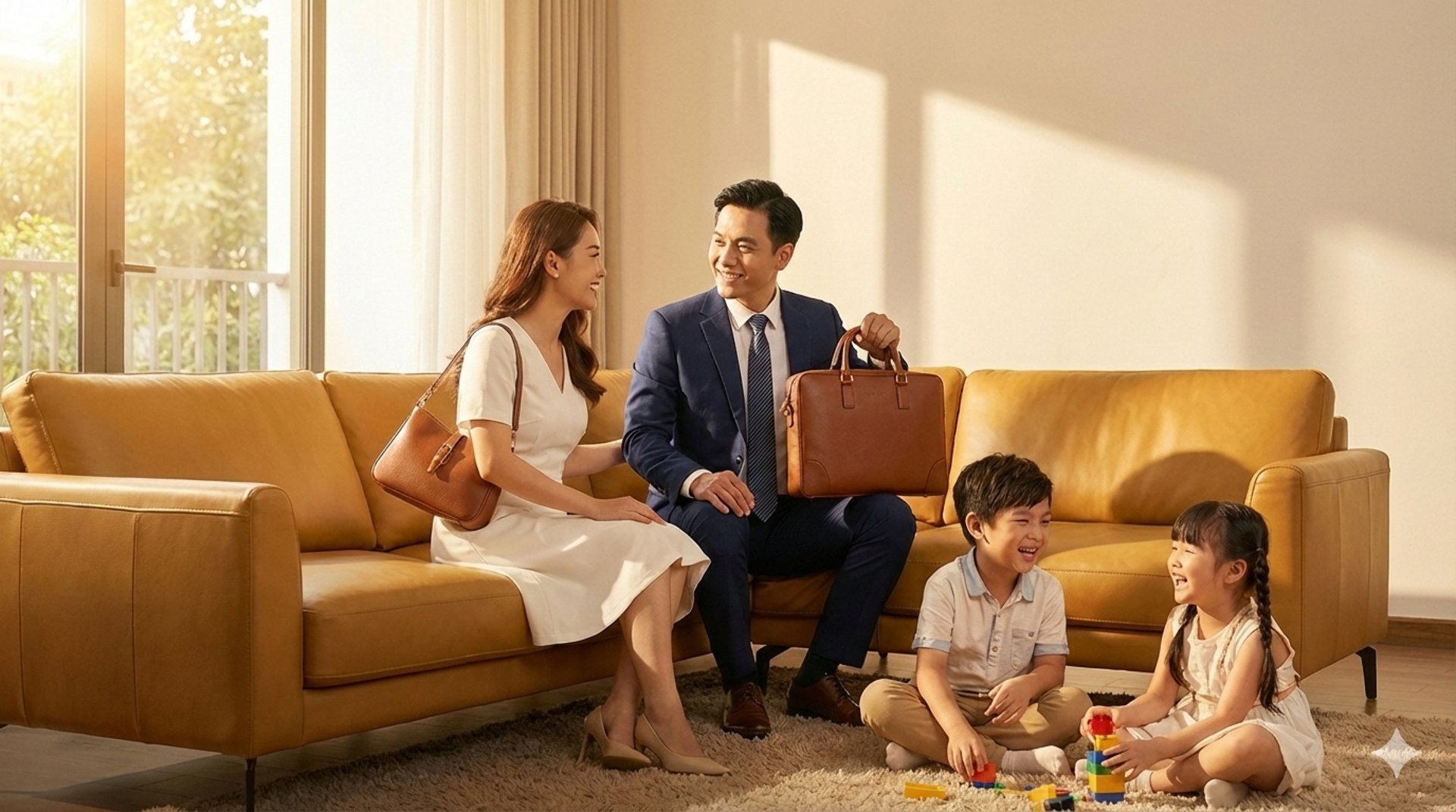 Da sofa sang trọng, mang lại cảm giác êm ái và dễ dàng vệ sinh.